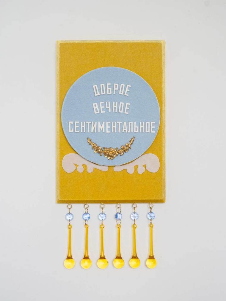 mixed media (velvet, plywood, crystal, metal, glue)34 x 25 cm