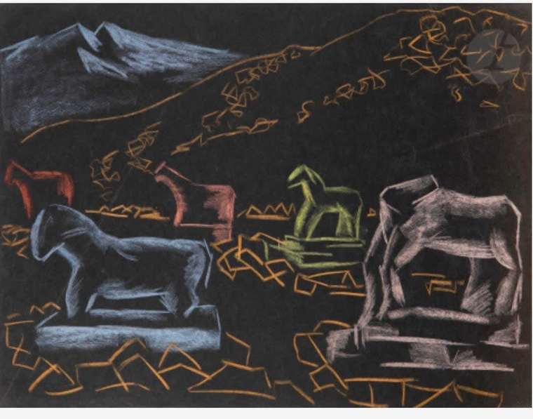 A nonconformist artist. Called his style ‘structural symbolism’: fragmented the world into symbols and combined them together again in paintings, graphics, collages, etchings, objects. Represents artefacts from different cultures: Prehistoric, Greek, Ancient Russian, Contemporary. Creates complex tactile textures using sand, limestone, plaster, fabrics, paper. Ochre colour dominates. Works are in Metropolitan Museum, MoMA.