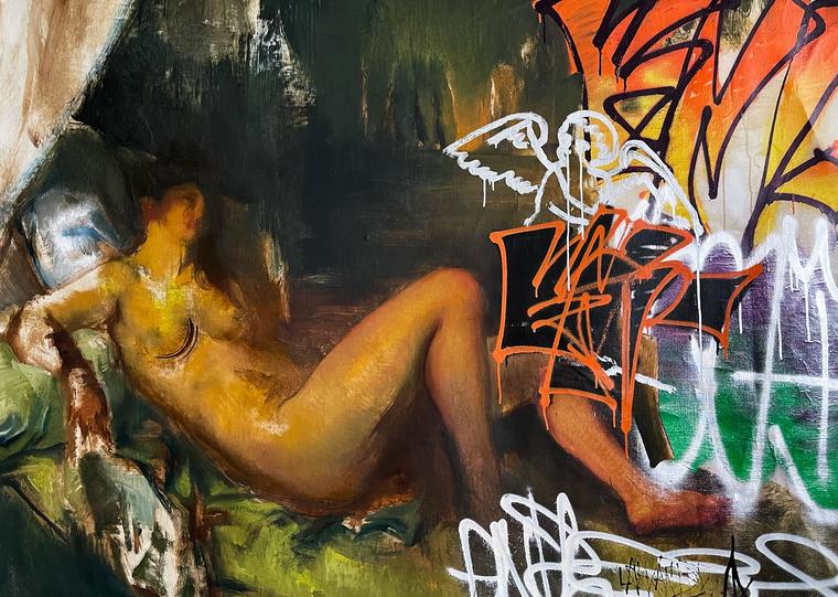 The artist paints graffiti over images from ancient mythology, deliberately committing an act of "vandalism", giving it an artistic character. He reimagines classical academic technique and blurs the boundaries between high art and street art. The artist participated in the Moscow International Biennale for Young Art (2018).