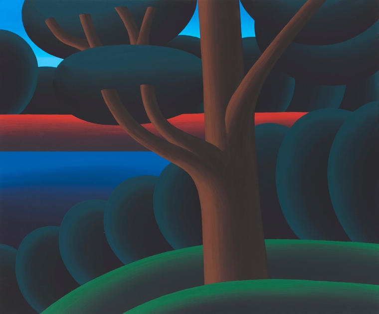 Oleg Khvostov was a member of “The New Stupid” group (1998–2001). In his portraits, still lifes, and landscapes, he uses contrasting acid colours with gradients and simplified shapes. The characters in the portraits are politicians and cultural figures. The paintings contain allusions to masterpieces of world art.