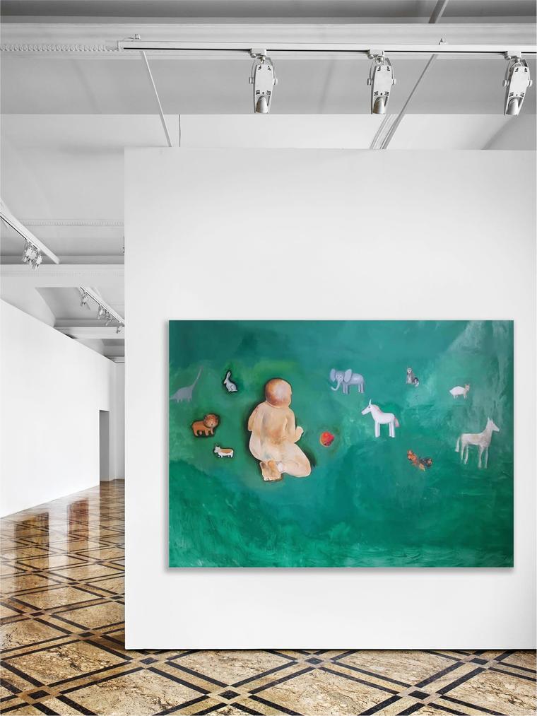 acrylic, oil pastel on plywood150 x 100 cm