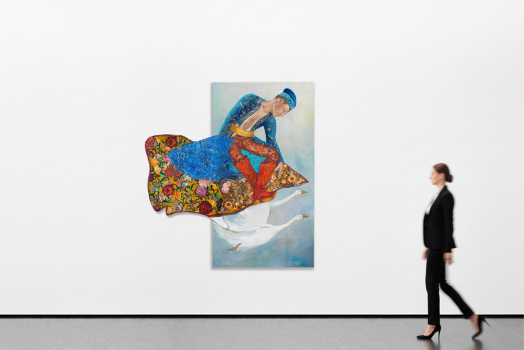 canvas, hardboard, oil, mixed media, collage110 x 200 cm (canvas), 68 x 67 cm (decor)