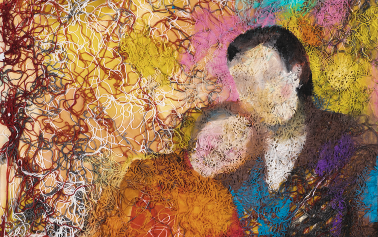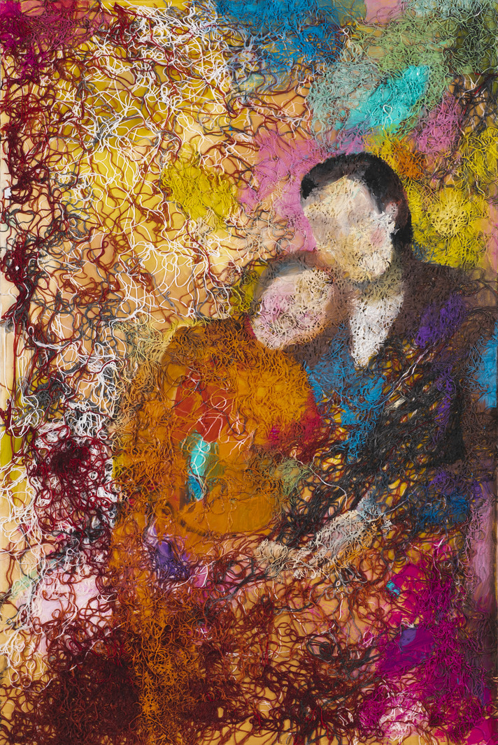 acrylic, threads, acrylic varnish on tablet140 x 140 cm