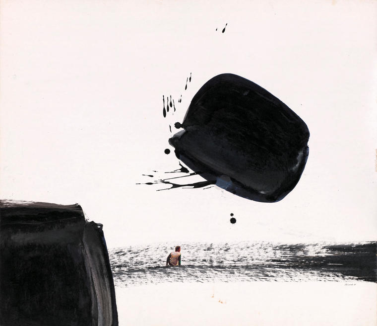 ink, brush, tempera, whitewash, collage on cardboard80 x 69,7 cm