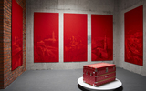 sanguine, charcoal, chalk on canvas145 x 315 cm