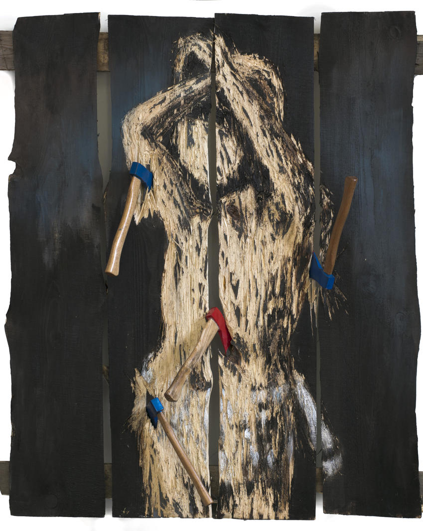 ax cutting, mixed media, enamel on wood151 x 130 x 25 cmstarting price €100
