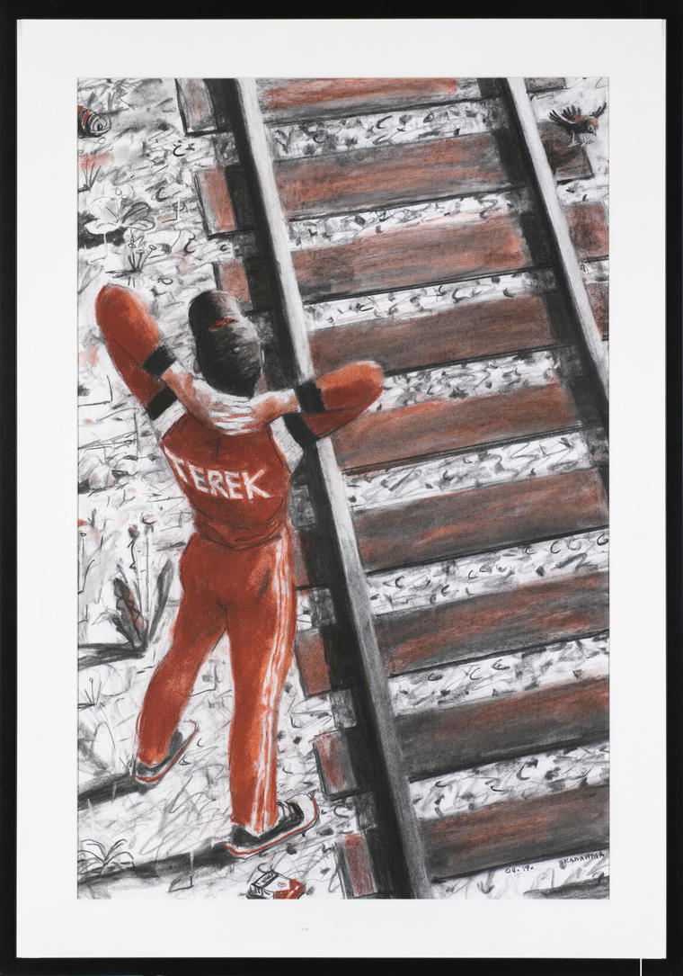 jacket by Stenosis 515, clay from the Nile River, Egyptian sand and papyrus, smoking pipe, oil pastel on canvas158 х 110 cmstarting price €2,500