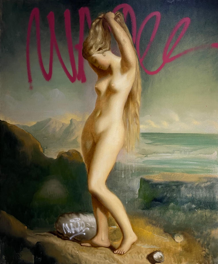 Художник из Москвы. Поверх живописных сюжетов из античной мифологии рисует граффити, сознательно совершая акт «вандализма», придавая ему художественный характер. Переосмысляет классическую академическую технику: стирает границы между высоким искусством и стрит-артом. Участник Московской международной биеннале молодого искусства (2018).