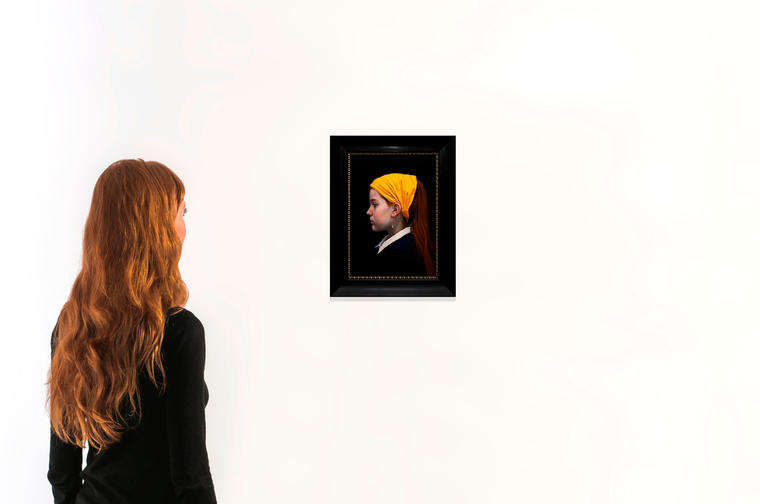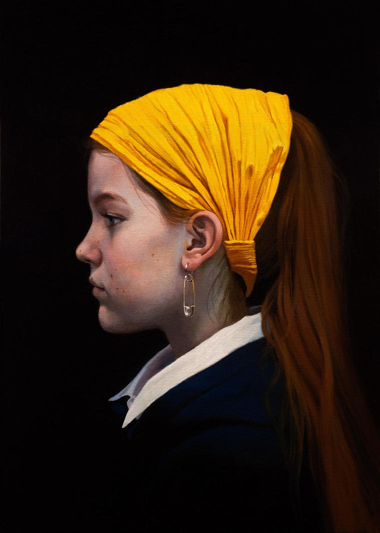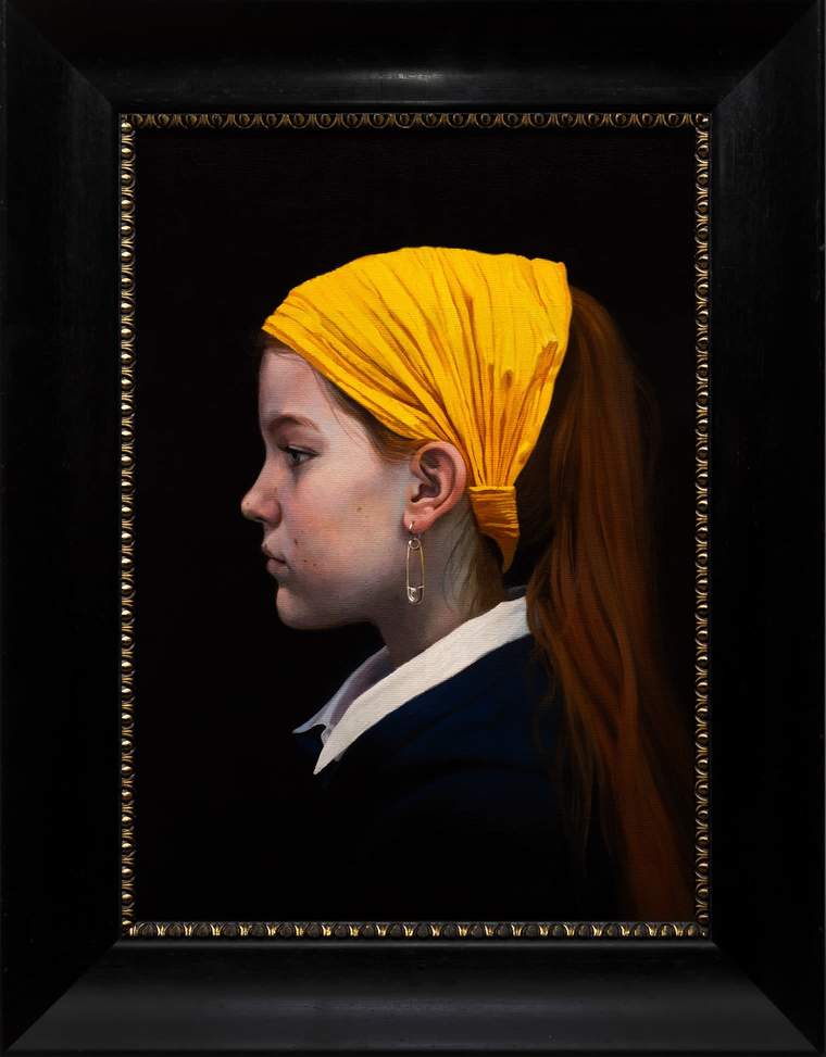 «Мы обращаемся к сюжету Яна Вермеера, но подаем всем известную историю “Девушки с жемчужной серёжкой” буквально с нового ракурса. На картине изображена дочь панка, получившая по наследству от отца украшение его юности — английскую булавку, которую она теперь носит как настоящую драгоценность.