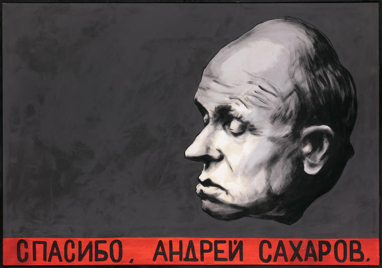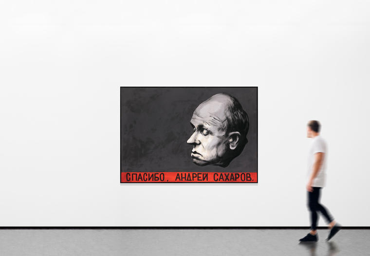 Дмитрий Врубель в апреле 1990 года оказался в Восточном Берлине как участник выставки авангардного русского искусства: «Еще стояла Берлинская стена, охраняемая пограничной стражей. Немцам уже можно было ходить туда-сюда, а мне — нет, виза-то гэдээровская. И у стены жались группки художников, что-то там малевали. И мне сразу же захотелось пристроиться и поработать рядом с ними. И я уже знал, что буду писать поцелуй Брежнева и Хонеккера…». Так появилась знаменитая работа художника «Братский поцелуй», ставшая визуальным символом падения «железного занавеса». В первые дни после создания росписи ее фотографии были опубликованы в ведущих немецких газетах и журналах, а затем разошлись по всему миру. В том же 1990 году Врубель создает еще одну работу на уцелевшем фрагменте Берлинской стены с изображением посмертной маски советского физика-ядерщика, диссидента и борца за права человека Андрея Сахарова и словами благодарности в его адрес на немецком языке — “Danke, Andrej Sacharow”. Представленное на торгах полотно — авторское повторение образа известного правозащитника в монохромном колорите, исполненное художником в технике живописи.