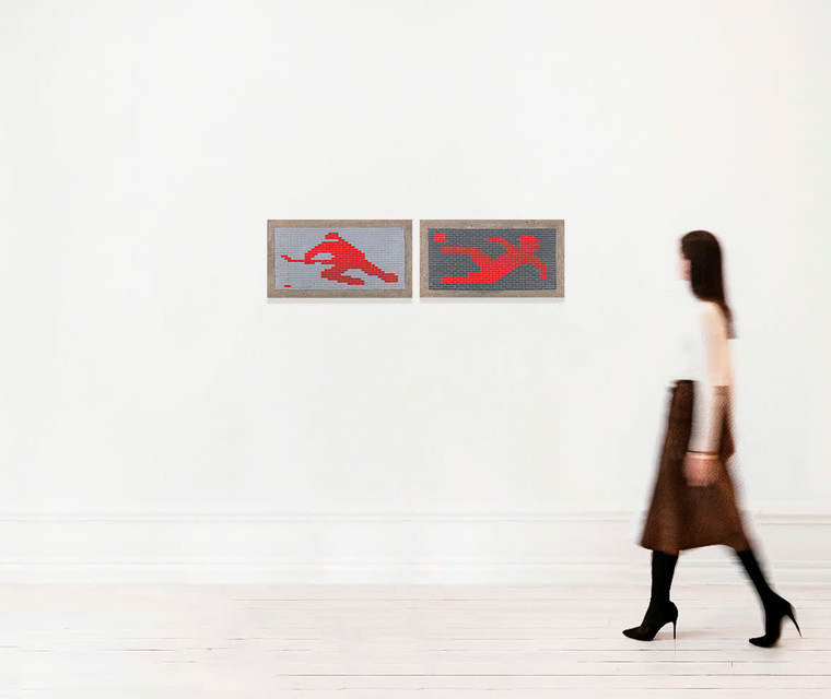 «Воспоминания о советских кирпичных граффити, украшавших брандмауэры домов, хранятся в памяти всех, кто застал эпоху СССР. Обычно эти граффити изображали нечто оптимистичное — мускулистых рабочих, спортсменов, животных, народные орнаменты, социалистическую и государственную символику, лозунги. Я воспроизвожу эти архетипические изображения из пластиковых деталей конструктора LEGO.