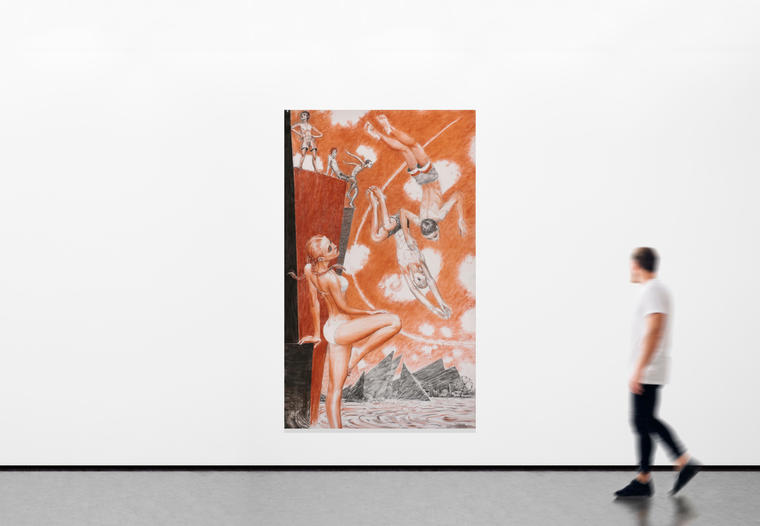 «Эта работа аполитична, в ней я говорю, что искусство важнее, чем политика. Линии и композиция — это язык, который говорит сам за себя. В данном случае, центральный мотив — пластическая свобода. В работе искусственность противопоставляется образу человека. Его тело — формообразующее, задающее новые иероглифы, некий композиционный орнамент.