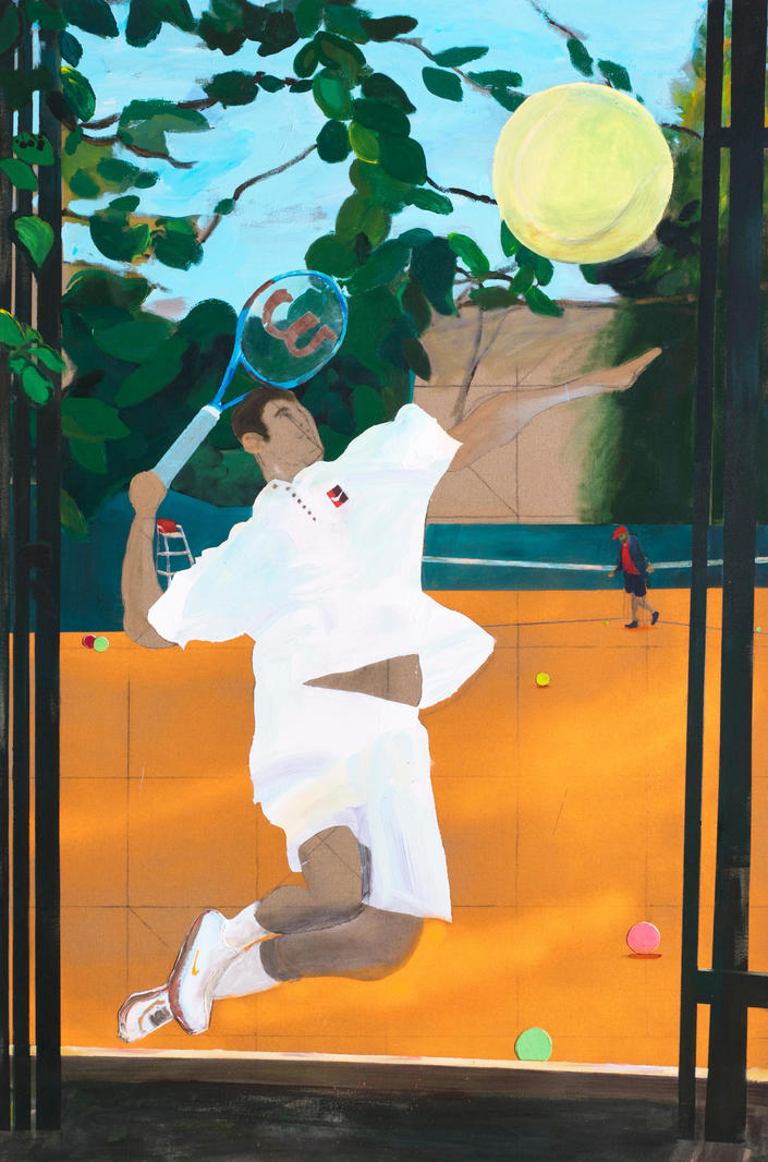 «В этой работе я соединяю два своих любимых занятия — теннис и живопись. И то и другое дает мне ощущение силы, витальности и полета. А цвета корта, мячей и формы наполняют меня энергией».