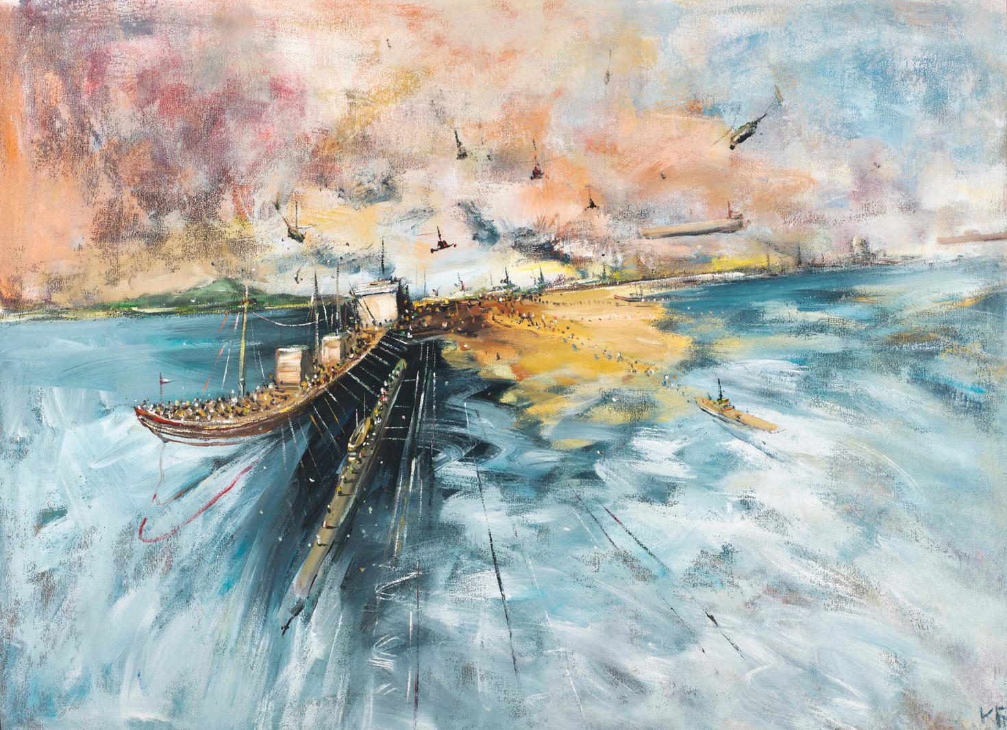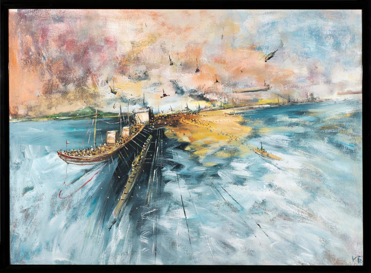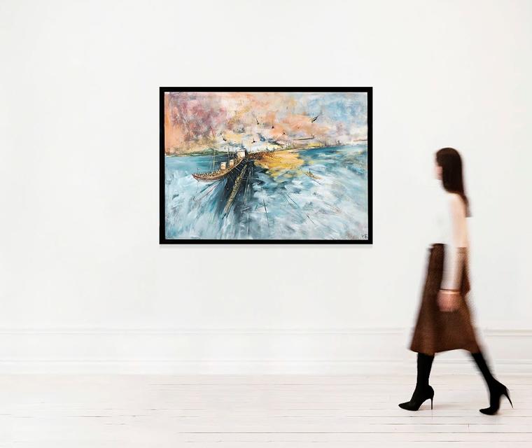 Живопись Константина Батынкова — это зафиксированное движение изображенных объектов. Каждый из элементов на полотне будто вот-вот сорвется с места, перестанет быть неподвижным. В его картинах бегут маленькие человеческие фигуры, едут машины, летят самолеты, плывут корабли, даже статичные по сути сюжеты у Батынкова как бы пульсируют, дышат. Это роднит художника с футуристами, провозгласившими движение одним из важнейших художественных принципов. Работы Константина Батынкова находятся в коллекциях Третьяковской галереи, ММОМА и ГЦСИ. V