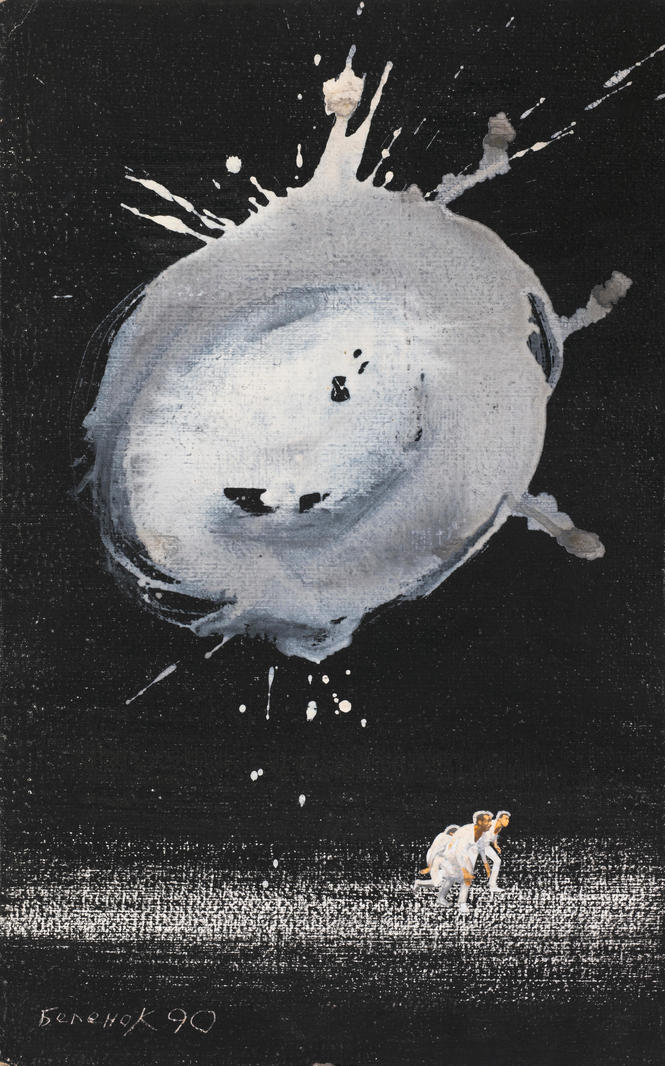 В разное время современники художника трактовали работы по-разному: в 1960–1970-х видели связь с научной фантастикой и популярной тогда темой освоения космоса, ближе к 1980-м чаще отмечали в них соответствие напряженным настроениям тех лет, а затем и тревожное предчувствие чернобыльской катастрофы и распада СССР. Но эпохи уходят, а произведения искусства остаются, и сегодня мы видим в этих работах что-то иное, актуальное или вневременное. В работах Петра Беленка сюжет всегда остается открытым, загадочным. Художник помещает героев в бескрайние пространства, в которых поэтически и фантастически происходят абстрактные катастрофы. Доминирующий белый цвет подчеркивает ирреальность происходящего — это звенящее пустое пространство, вспышки или пыль от взрывов, следы стремительных падений.
