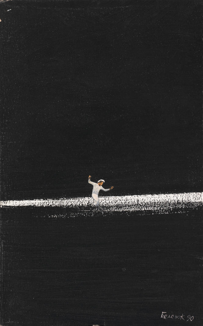 В разное время современники художника трактовали работы по-разному: в 1960–1970-х видели связь с научной фантастикой и популярной тогда темой освоения космоса, ближе к 1980-м чаще отмечали в них соответствие напряженным настроениям тех лет, а затем и тревожное предчувствие чернобыльской катастрофы и распада СССР. Но эпохи уходят, а произведения искусства остаются, и сегодня мы видим в этих работах что-то иное, актуальное или вневременное. В работах Петра Беленка сюжет всегда остается открытым, загадочным. Художник помещает героев в бескрайние пространства, в которых поэтически и фантастически происходят абстрактные катастрофы. Доминирующий белый цвет подчеркивает ирреальность происходящего — это звенящее пустое пространство, вспышки или пыль от взрывов, следы стремительных падений.