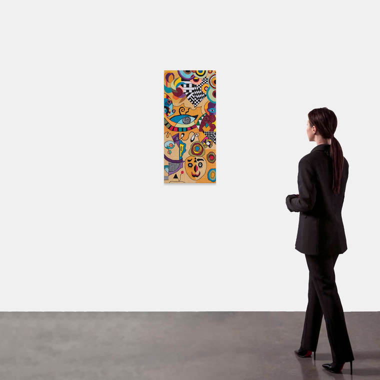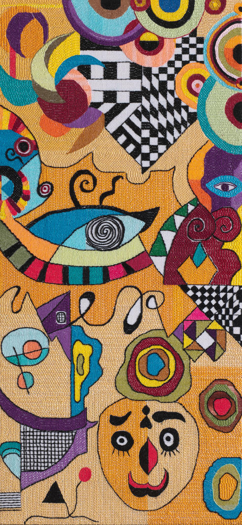 дерево, акрил, масло, шёлк, ручная вышивка, ткань218 x 51 см