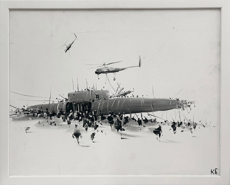Живопись Константина Батынкова — это зафиксированное движение изображенных объектов. Каждый из элементов на полотне будто вот-вот сорвется с места, перестанет быть неподвижным. В его картинах бегут маленькие человеческие фигуры, едут машины, летят самолеты, плывут корабли, даже статичные по сути сюжеты у Батынкова как бы пульсируют, дышат. Это роднит художника с футуристами, провозгласившими движение одним из важнейших художественных принципов. Работы Константина Батынкова находятся в коллекциях Третьяковской галереи, ММОМА и ГЦСИ. V
