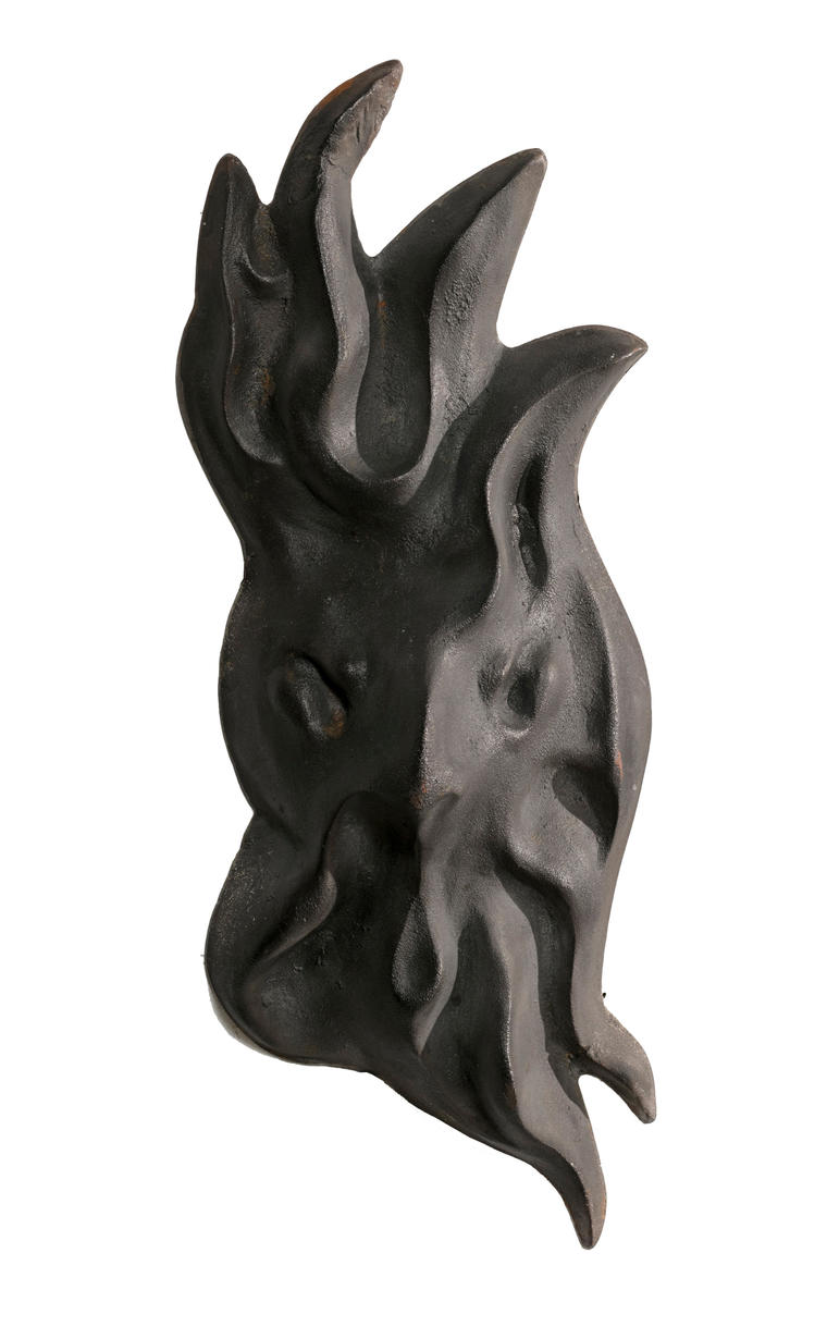 Представленная работа — свободно литая. Художница создает форму в инверсии в заготовленной глыбе песка, потом заливает чугун и смотрит, что вышло в объеме.