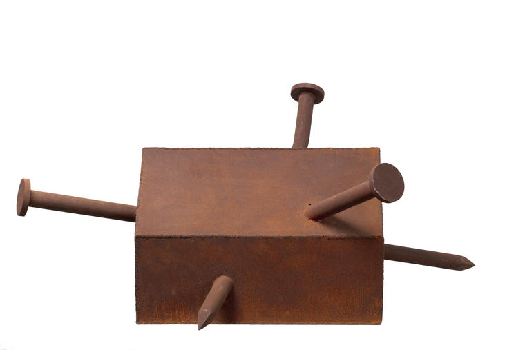 Даже в нетипичном для Волигамси медиуме объекта художнику удается воплотить все узнаваемые для своего творчества черты. В представленной работе сталь с налетом ржавчины словно становится переосмыслением излюбленных художником архивных фотографий, пожелтевших от времени, а сама форма объекта намекает на, что он может быть одной из построек в вымышленном городе Двоегорск, неопределенного географического и временного положения. С одной стороны, здание кажется знакомым и даже типовым, на что намекает номер в его названии, однако необычная форма, будто бы обрезанная снизу, делает из него сюрреалистичный объект. Волигамси воссоздает советскую утопию, изобретая свой, совершенно уникальный, вариант соц-арта с элементами абсурда. Используя прямые отсылки и «дословные цитаты», ему удается оставаться в рамках коллективной памяти, «общих мест» советской истории и вместе с тем высветлять наиболее абсурдные и болезненные ее моменты.