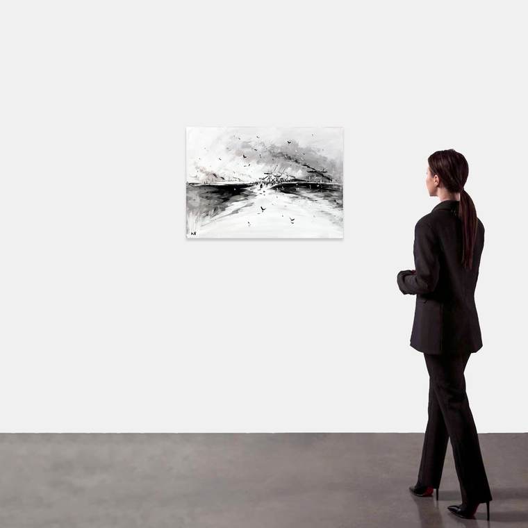 Работа создана в характерной для произведений Константина Батынкова 2000-х годов монохромной цветовой гамме. От изобилия мелких штрихов, деталей создается впечатление стремительно летящей фантазии художника. Благодаря беглому и свободному мазку, формирующему композицию, и нечеткости контуров и форм, его полотна замирают на тонкой грани между абстрактной и фигуративной живописью.