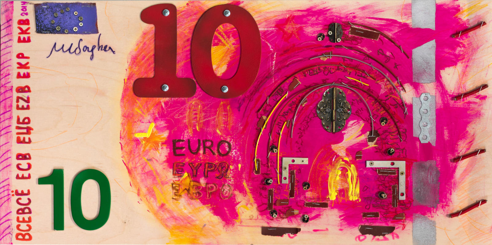 С тех пор купюра прошла рестайлинг, обрела молдинги и допцвета, новую систему защиты. А всё же я часто вспоминаю ту — хрустящую, молодую, сочно-розовую купюру достоинством в десять евро».