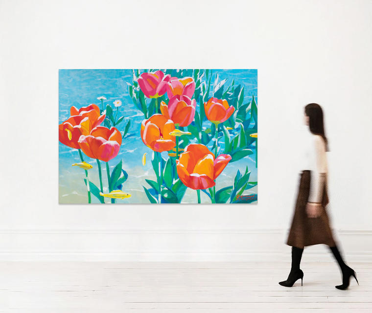 К началу 2000-х Виноградов и Дубосарский стали одними из самых востребованных современных художников на российском рынке искусства. Их серии масштабных живописных произведений отражают разнообразные подходы к понятию красоты, которую художники рассматривают через призму гламура и глянца молодого российского капитализма. Представленная работа является частью знаменитого цикла Виноградова — Дубосарского Underwater («Под водой»), которая началась с огромного многочастного фриза, созданного специально для павильона России на 50-й Венецианской биеннале в 2003 году. Переход на «подводную тему» художники объяснили так: «Последнее время мы делали рай на земле — и рай на земле мы уже освоили, а это подводный мир, как бы такая утопия… Это очень красивый мир… с одной стороны, это идеальная красота, а с другой — всякая фантастика». Конечно, Виноградов и Дубосарский и до этого разрабатывали весьма «сомнительную» версию реализма, но вот такая жизнь под водой совсем уж невозможна, однако их герои как-то умудряются ее вести.