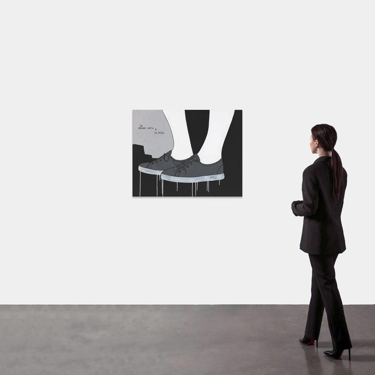 На хорватском языке на работе написано «У меня нет ничего ни для кого». Фон представляет собой разбитое на монохромные плоскости с характерными красочными потеками пространство. В работе сконцентрированы характерные для искусства Валерия Чтака особенности — лаконичность, строгость композиционных решений, монохромная цветовая гамма, соединение изображения и слова.