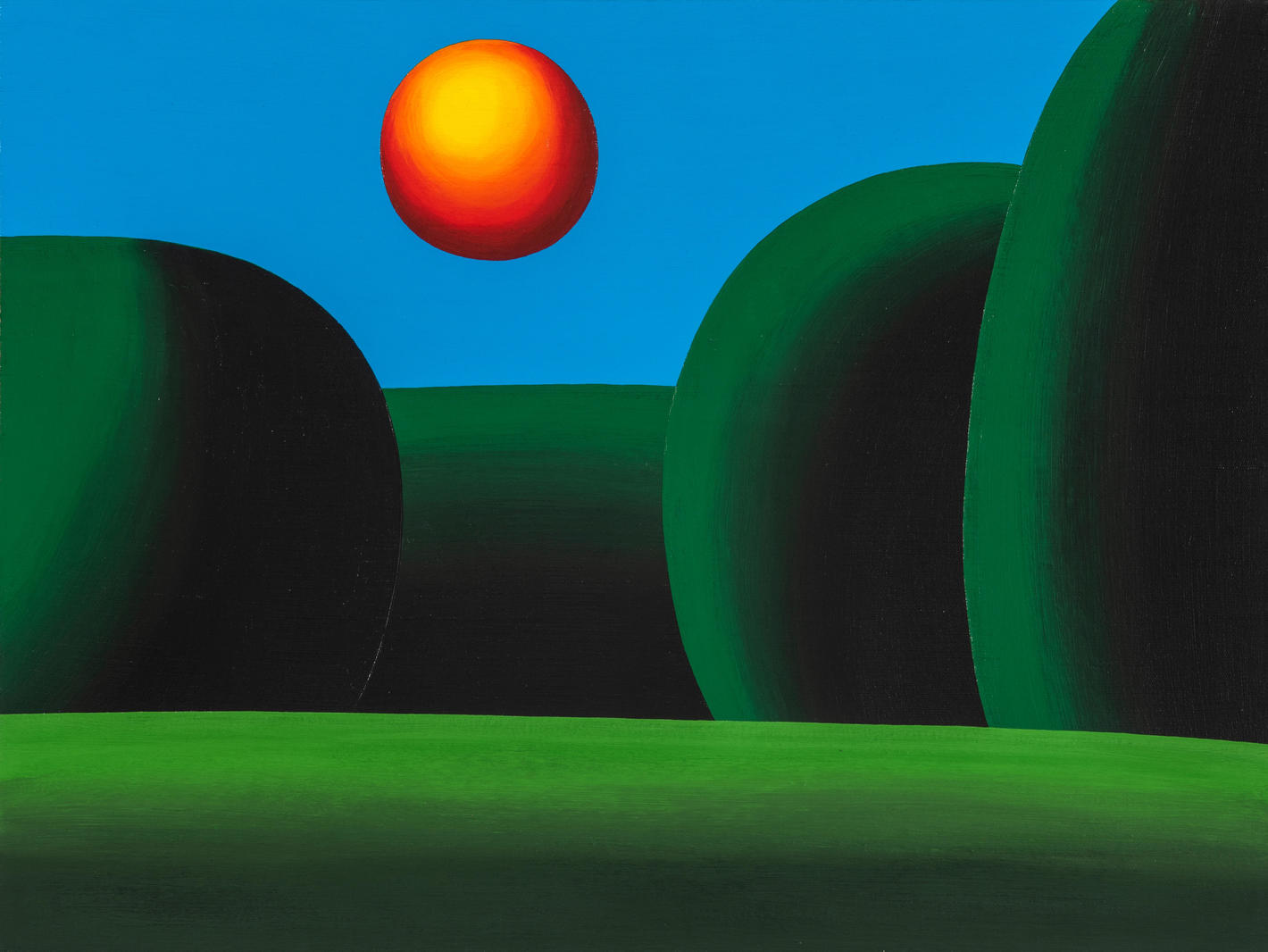Художник не изменяет привычному жанру — это пейзаж, в котором невозможно найти свободного места, нет ни единого живого существа. Изображаемое — продукт идеальной вселенной и, кажется, не имеет отношения к чему-либо по-настоящему существующему на земле. Творчество Олега Хвостова представляет собой своеобразную игру с современностью. Отточенная до совершенства техника напоминает компьютерную графику, упрощение форм — условность рекламного плаката. Линии в его работах стремятся вдаль с необратимой скоростью, а живая природа кажется застывшей пластиковой декорацией. При всем этом пейзаж не теряет своей романтичности, а творческие приемы — самобытности.