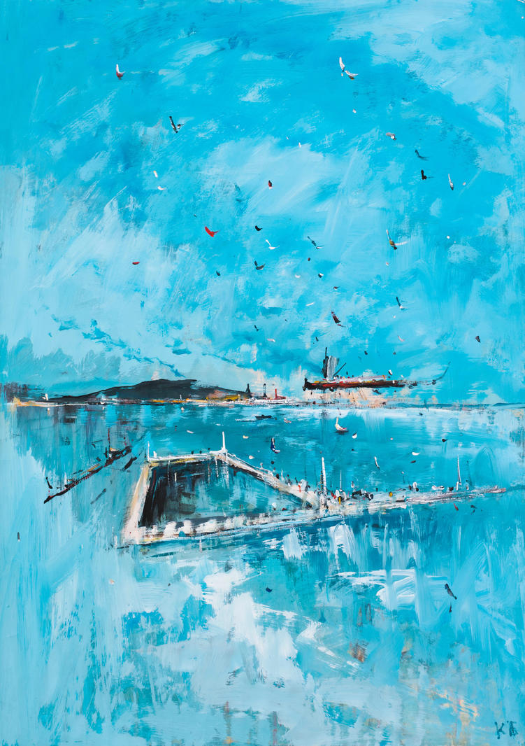 Живопись Константина Батынкова — это зафиксированное движение изображенных объектов. Каждый из элементов на полотне будто вот-вот сорвется с места, перестанет быть неподвижным. В его картинах бегут маленькие человеческие фигуры, едут машины, летят самолеты, плывут корабли, даже статичные по сути сюжеты у Батынкова словно пульсируют, дышат. Это роднит художника с футуристами, провозгласившими движение одним из важнейших художественных принципов. Работы Константина Батынкова находятся в коллекциях Третьяковской галереи, ММОМА и ГЦСИ. V
