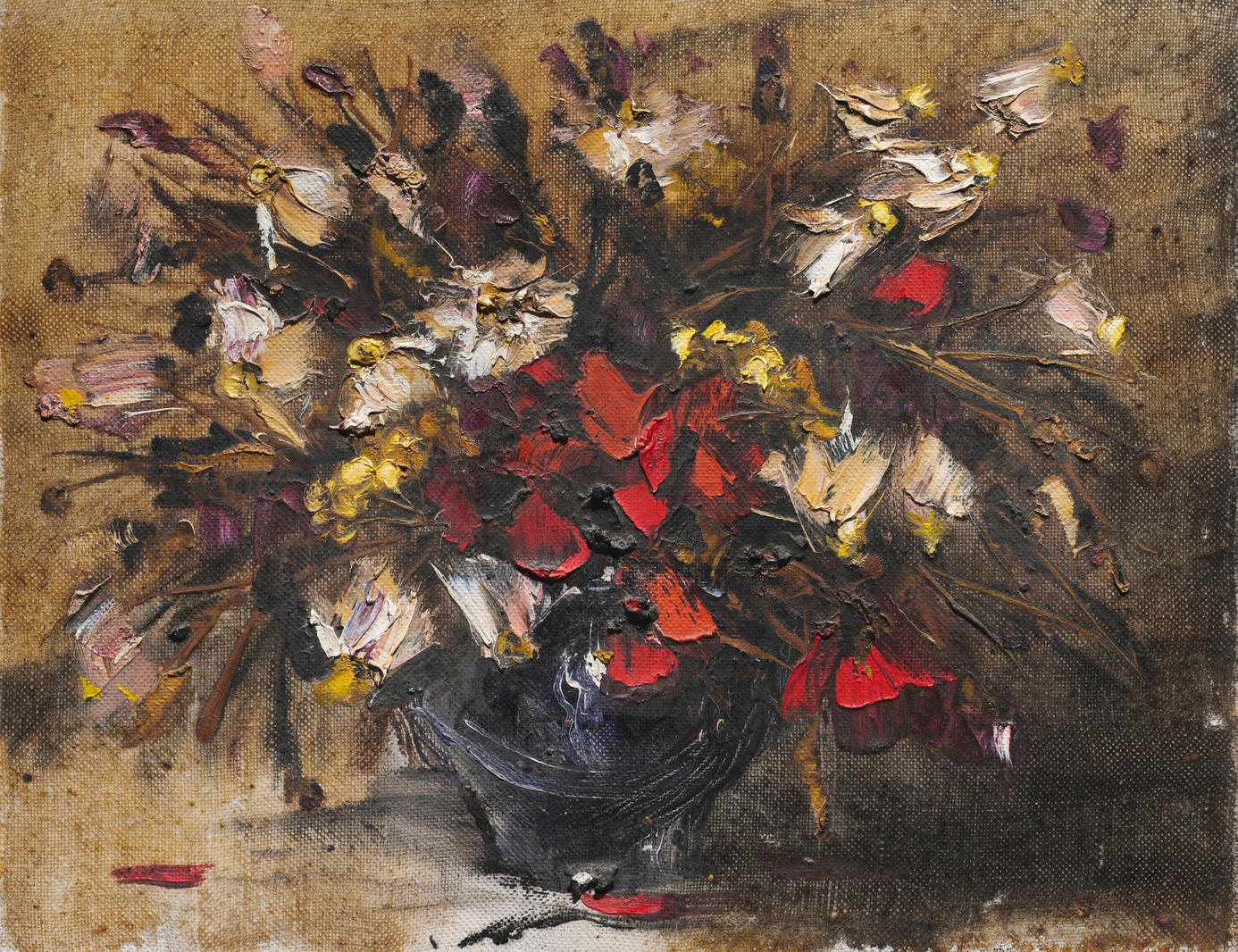 В представленном на торгах полотне 1991 года Лаврентий Бруни обращается к магистральной теме своего творчества — цветам. Работа выполнена в фирменной экспрессивной манере художника, нередко совмещающего работу кистью и мастихином.