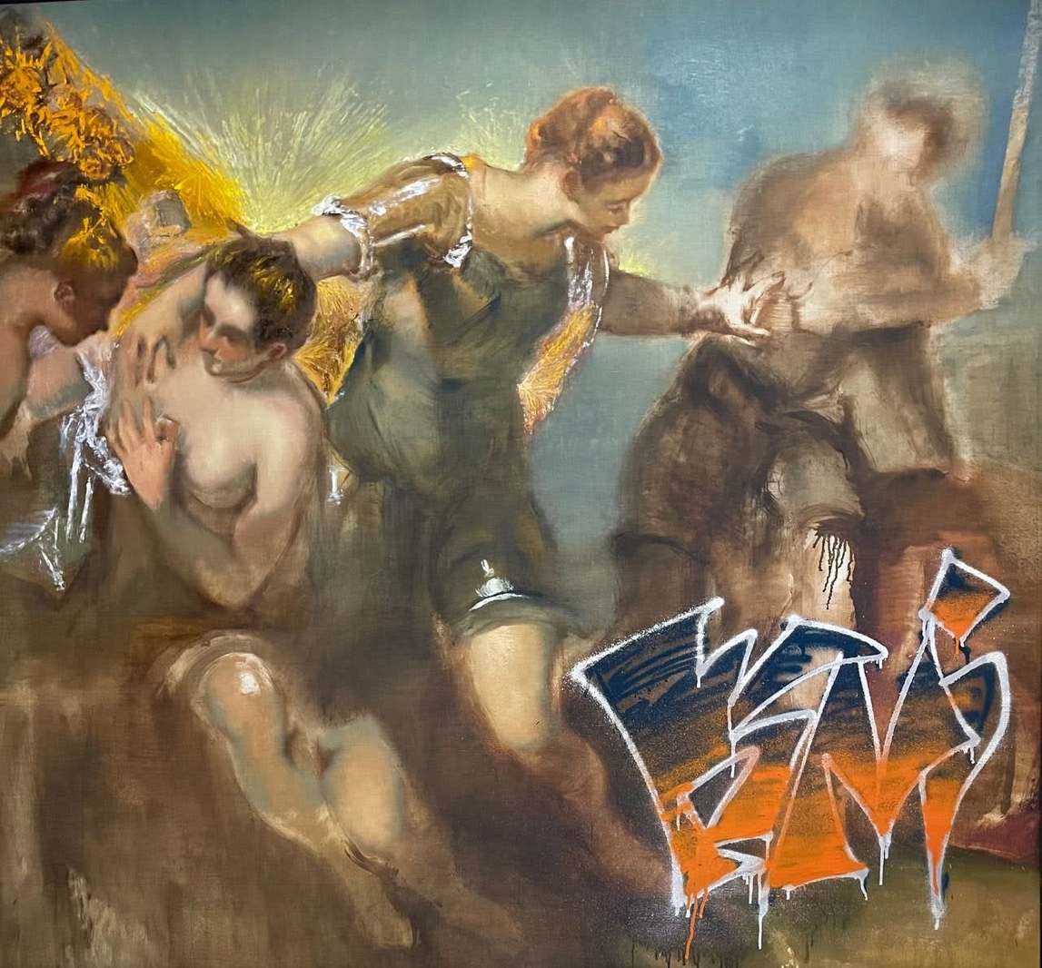 Художник LARKANDRE, выпусник Строгановской академии, создает особое живописное пространство, где знаковые образы классического искусства гармонично соединяются с элементами стрит-арта. Поверх сюжетов из античной мифологии он рисует граффити, сознательно совершая акт «вандализма» и придавая ему таким образом художественный характер. Переосмысляя классическую академическую технику, LARKANDRE стирает границы между высоким искусством и стрит-артом, создавая новый визуальный язык. В 2018 году художник принял участие в Московской международной биеннале молодого искусства. V