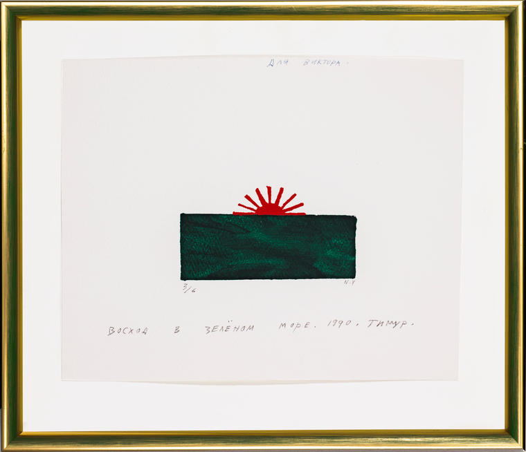 Образы солнца и моря в работах Новикова особенно показательны: солнце выступает как знак жизненной энергии, света и возрождения, море — как символ глубины, подсознательных эмоций и внутреннего пространства. Благодаря знаковой перспективе и семантической насыщенности простые геометрические формы обретают многослойное значение, создавая ощущение одновременно близкого и далёкого, и превращая природные мотивы в универсальные визуальные знаки, через которые художник исследует внутреннюю вселенную человека и процессы гармонии, движения и обновления.