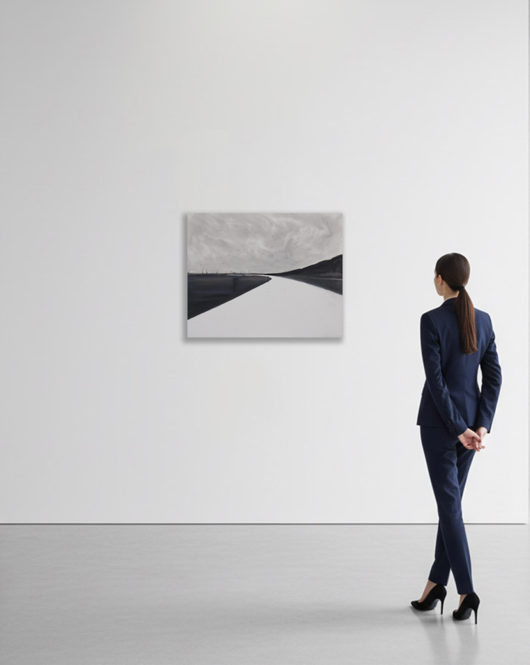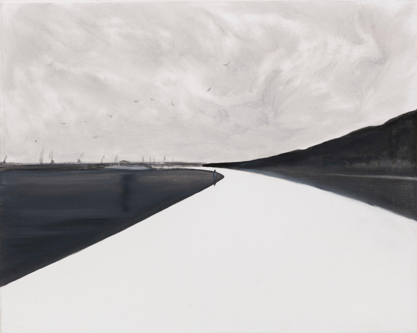«В творчестве петербургского художника Ильи Овсянникова особое место принадлежит мотиву набережной, уже ставшему своеобразной визитной карточкой дореволюционного петербургского и ленинградского пейзажа. Казалось бы, предложить что-то новое в плане воплощения этого мотива весьма сложно. Однако, постоянно варьируя этот мотив, включая в него фигуры людей или изображения кораблей, художник акцентирует основного героя — пространство, или, точнее, его переживание художником или запечатленными на холсте персонажами, которые как бы неспешно, шаг за шагом, осваивают это пространство. Наиболее сильный эффект присутствия в данном случае позволяет создать именно монохромная гамма, которой художник придерживается в своей живописи на протяжении нескольких последних лет. Эта гамма позволяет гармонично соединить мимолетность впечатления и монументальный размах в показе широкого пространства с его конструктивной логикой. Диалог черного и белого во многом позволяет автору создать метафизику города, которая становится наиболее ощутимой как раз в самых лаконичных (и даже минималистичных) по композиции полотнах».