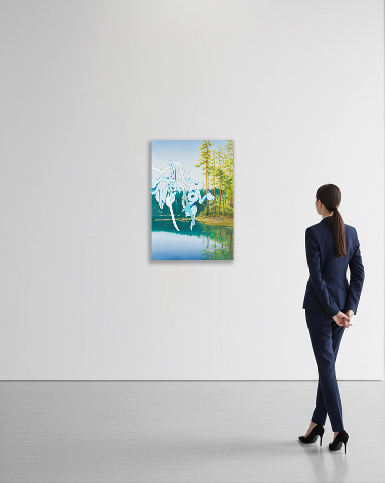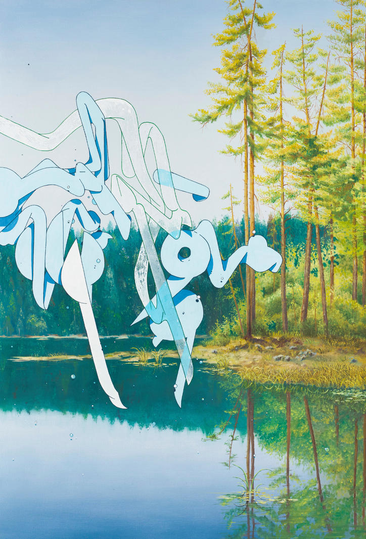 Совместная работа Ян Тихоненко и Анатолий Akue возникла почти случайно во время их встречи в Черногории. В тот период Ян писал серию пейзажей, вдохновлённую жизнью между морем и скалами — состоянием уединения и спокойствия природы. Он предложил Анатолию поэкспериментировать и создать совместную работу, поскольку в художественных коллаборациях часто рождаются уникальные образы. По словам Akue, идея появилась очень быстро — скорее как смысл, чем как конкретная форма: образ энергии места, с которой можно вступить в контакт. Художник сознательно отказался от зеркального отражения в воде, чтобы подчеркнуть, что это иная материя, не подчиняющаяся привычным законам физики, — прозрачное и сияющее присутствие осознающего ума.