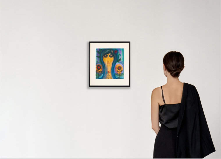 Представленная работа 1984 года предположительно относится к циклу «Девушки». Несмотря на уникальность образов героинь цикла, каждую из них Сидур наделяет двумя особенностями: большими выразительными глазами и точеными чертами лица, в которых воплощает образ своей супруги, музы и помощницы — Юлии Нельской. Добавляя героиням черты любимой, художник стремится передать свое мироощущение, где любовь и женское начало неразрывно связаны. Образ изящества и нежности в представленной работе создается за счет размытия линий контуров, вытянутых пропорций лица и обилия вертикальных линий (каждый элемент устремлен вверх). Портрет девушки дополняется цветами, что характерно для многих графических произведений Сидура. Этот прием подчеркивает еще один концептуальный аспект искусства художника — мечты о жизни человека в гармонии с природой.