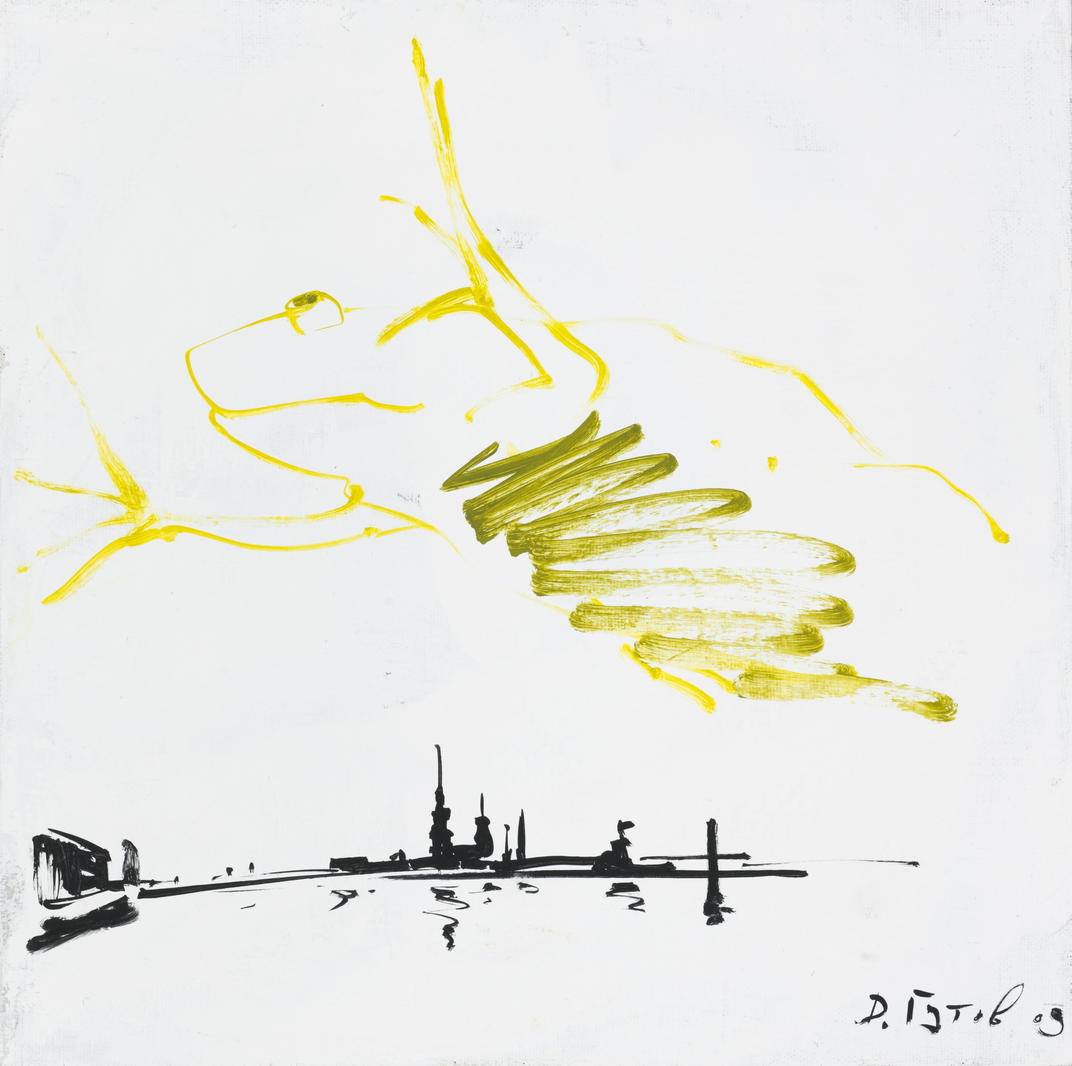 Картина «Прыжок» (2009) из коллекции Бакштейна корреспондирует с другими работами с лягушками, которые он начал писать в начале нулевых. В одном из интервью художник объяснил, почему для него важен этот образ: "Я изучаю всякие китайские, японские тексты по каллиграфии и живописи тушью. О том, как правильно концентрировать внимание, как правильно раскрепощать запястье и кисть. Лягушка – это важный образ, он возникает постоянно. Лягушка в медитации, лягушка в позе Будды. Или с чего начались хайку? Когда великого поэта Мацуо Басе спросили, в чем сущность дзэна, он ответил: "Старый пруд. Прыгнула в воду лягушка. Всплеск в тишине".
