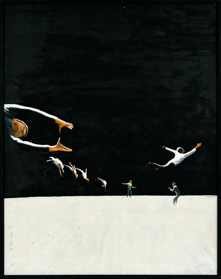 В разное время современники художника трактовали работы по-разному: в 1960–1970-х видели связь с научной фантастикой и популярной тогда темой освоения космоса, ближе к 1980-м чаще отмечали в них соответствие напряженным настроениям тех лет, а затем и тревожное предчувствие чернобыльской катастрофы и распада СССР. Но эпохи уходят, а произведения искусства остаются, и сегодня мы видим в этих работах что-то иное, актуальное или вневременное. В работах Петра Беленка сюжет всегда остается открытым, загадочным. Художник помещает героев в бескрайние пространства, в которых поэтически и фантастически происходят абстрактные катастрофы. Доминирующий белый цвет подчеркивает ирреальность происходящего — это звенящее пустое пространство, вспышки или пыль от взрывов, следы стремительных падений.