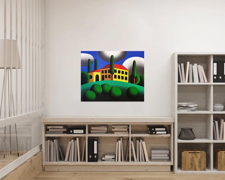 В представленном «Тосканском пейзаже» не найти свободного места, практически отсутствует воздух, нет ни единого живого существа. Идеальные округлые облака застыли, будто бы намертво скрепленные с синевой неба. В этой вселенной ничего не происходит — художник не оставляет возможности вторжения случая, события. На холме Хвостов изображает дом с окнами, напоминающими черные зарницы, которые создают у смотрящего на работу ощущения неизведанного, таинственного, скрытого ото всех пространства, в котором нет места для движения жизни. Так художник формирует в картине вакуумное пространство — недвижимое и спокойное.