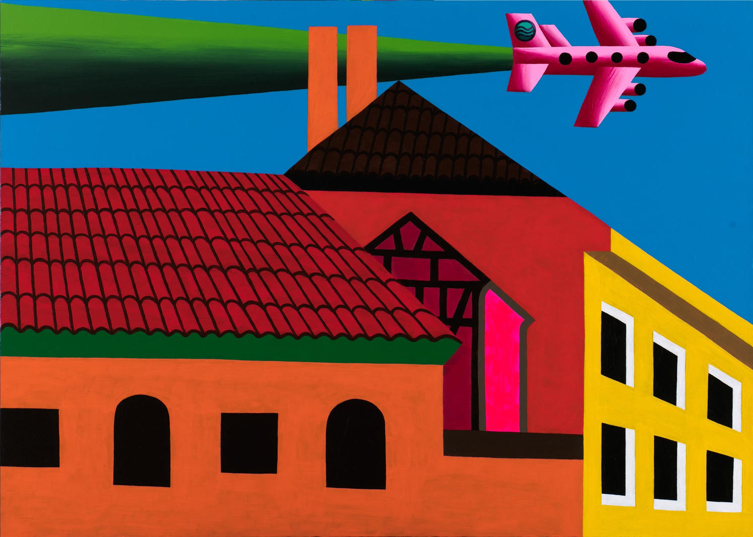 Картина «Замок Инстербург» — один из редких пейзажей Олега Хвостова, где можно узнать реальную местность. За минималистичной трактовкой архитектуры угадываются очертания дворца XIV века под Калининградом. Художнику важно создать не подобие реальности, но вычленить и довести до совершенства базовые формы. Поэтому в архитектуре, хоть она не так часто появляется в его пейзажах, он подчеркивает ее тектоничность, логику и яркость. V