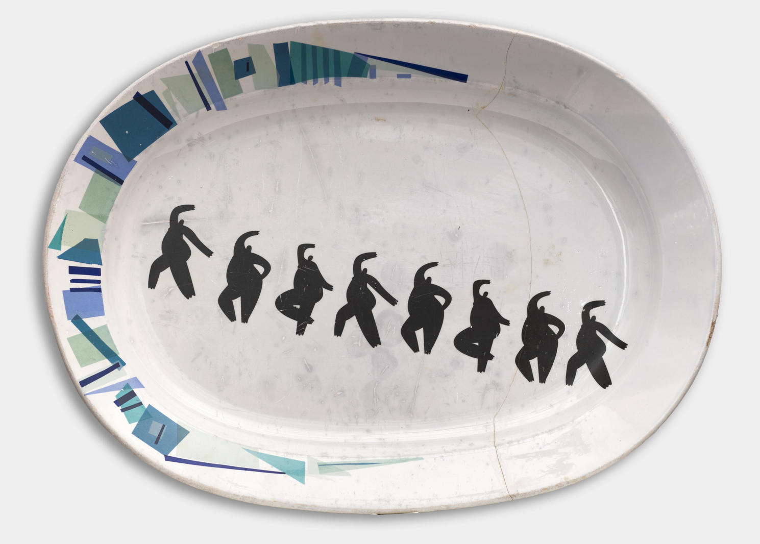 Одинаковые авангардные тела радостно топают на производство, в 1930-е годы Уралмашзавод (завод-гигант, один из 4 самых больших заводов России) был для людей «новой светлой жизнью». А завод тем временем безжалостно поглощает все новых и новых людей. Девушки идут по диагонали блюда, через большую «площадь» к заводу на проходную, все как в жизни. Многие, кто до сих пор живут около завода в соцгороде Ураламаш, с радостью вспоминают работу. Это блюдо — часть серии «Уралмашевские истории», где все изображения выполнены на старинных фаянсовых и фарфоровых тарелках из семьи художников.