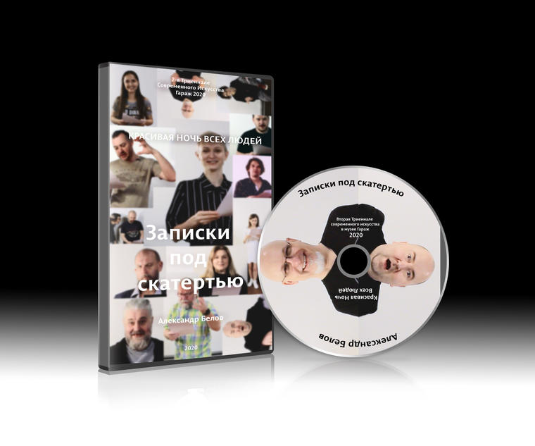 Вторая часть лота — видеопроект «Записки под скатертью» — запись рассказов Александра Белова, начитанная известными культурными деятелями, художниками, режиссерами и арт-критиками. Мистика, фантастика, бытовой сюрреализм в рассказах художника, изданных с 2008 по 2019 год, в прочтении Сергея Пахомова, Арсения Штейнера, Валентина Дьяконова и многих других «мастодонтов современного искусства», как характеризует своих героев автор. Работа представлена на 2-й Триеннале российского современного искусства «Красивая ночь всех людей» в Музее «Гараж». V