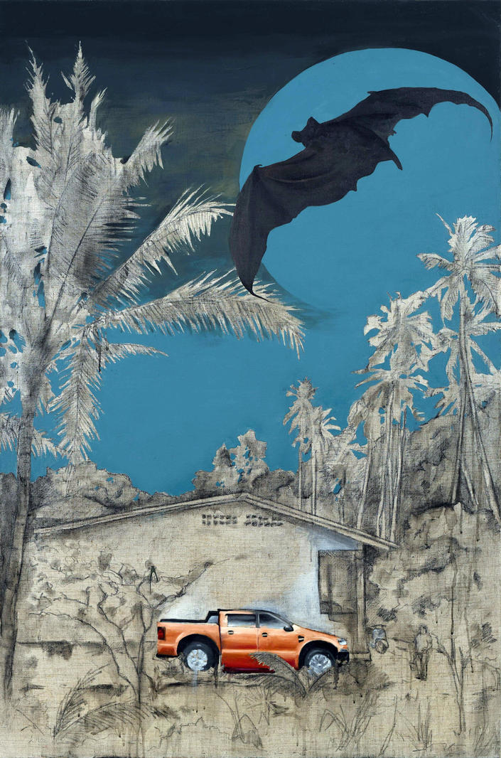 Картина не имеет отношения к эпидемии и легенде об обеде летучей мышью, когда я задумал ее, мы еще не знали как совсем скоро изменится наша жизнь…