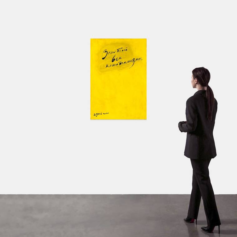 «Все свои холсты я довожу до состояния идеальной ровной поверхности, чтобы она напоминала левкас иконы, то есть была зеркально-гладкой. Источником вдохновения для этого холста послужило все, что происходило в 2020 году с миром, а также знаменитая книга Йохана Хейзинги "Осень Средневековья", где описывается золотой век средневековья. Получилась немного ироничная работа, когда среди всех этих катаклизмов смотришь на мир и понимаешь, что он должен как-то измениться, что он переживает свой закат, чтобы перезрев, исчезнуть и превратиться во что-то новое. Мне хотелось мягко передать это ощущение».