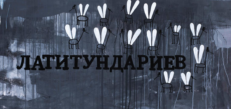 Текст — основа художественного мира Чтака, обусловленная его увлечением литературой. Примечательно, что в работах 2000-х художник был сосредоточен на «изобразительности» текста, и потому использовал сначала английские слова, а затем обратился к славянским языкам, строящим свою письменность на латинице. Его интересовала визуальная «красота» слова. За последние десять лет письмо утратило для него то, в некотором смысле, сакральное и одновременно эстетически обусловленное значение, и потому художник все чаще строит свое высказывание на русском языке. В представленной работе Чтак использует текст как способ дать волю первоначальной задаче произведения искусства: побудить зрителя к определенной интеллектуальной и эмоциональной активности. «Кто же такие латитундарии, и почему они против?» — первая мысль, которая приходит в голову при рассмотрении центральной части триптиха. Ответ — в ригористах. Художник использовал антоним латинскому слову «rigor», которое означает «твердость, строгость», и придумал новое понятие для этики, которое могло бы звучать как «латитундаризм». «Latitudo» означает «широта, свобода» — мыслей, взглядов, принципов. Так, Валерий Чтак переносит уличную концепцию «войны стилей» на холст и превращает ее в «войну убеждений». V