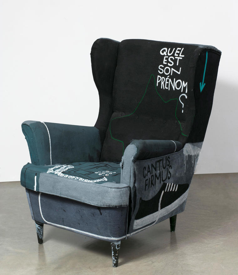 Продолжает музыкальную поэтику персональной выставки Валерия Чтака «Ноты» работа «Cantus Firmus». Главной мелодией или, как ее еще принято называть, «сердцем» многоголосной композиции становится кресло, дополненное текстовыми надписями на французском языке в фирменной манере художника. Вопрос, словно посланный в никуда, «quel est son prenom?» (как его зовут?) или же задумчивое «pleut» (дождь) превращают работу Чтака в постмодернистский манифест, в котором внешняя красота и необычные визуальное приемы играют такую же значимую роль, как и заложенный в нем смысл. Графичное здание, силуэт животного, обувь и телефонный провод складываются в загадочный сюжет, финал которого останется для каждого зрителя открытым, — художник знаменит тем, что категорически отказывается разъяснять смысл своих работ.