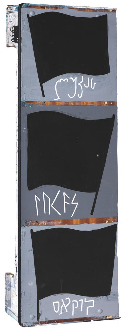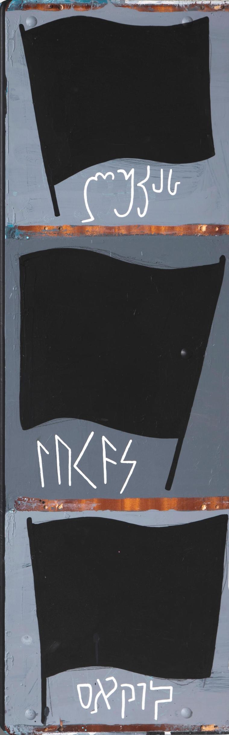 В представленной работе Валерий Чтак экспериментирует с поверхностью и форматом, используя в качестве основы произведения подставку от комода. Художнику импонирует взаимодействие с различными материалами, будь то винтажные чемоданы или деревянные детали бывшей мебели. Валерий Чтак работает акрилом в характерной ему манере лаконичной живописи. Цветовой минимализм он заимствует у Йозефа Бойса, а иконические изображения и идею включения текста в картины — у Жан-Мишеля Баския. Последнее стало характерной особенностью творчества Чтака. Так, в работе 2021 года сосуществуют грузинский, иврит и даже руны. Все три слова на этих языках переводятся как имя Лукас. Произведения художника необязательно содержат в себе связное послание, зачастую они наполнены фразами и словами, которые словно вырваны из контекста, что заставляет зрителя подолгу разгадывать визуальные ребусы.