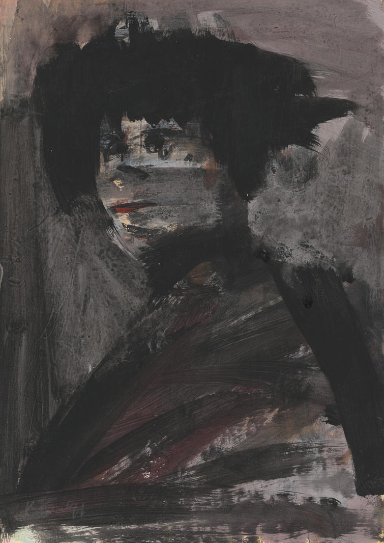 Любимым жанром Константина Батынкова, конечно, можно считать пейзаж, на фоне которого обычно и разворачивается все вышеописанное. Однако пейзажные серии нередко разбавляются обращением к жанру портрета. Представленная работа 1996 года отсылает к голландской живописной школе XVII века — портрет юноши в характерной шляпе, повернутого к зрителю вполоборота. Филигранную проработку каждой анатомической детали Константин Батынков заменяет экспрессивными штрихами. Произведения художника всегда предстают в движении, и даже такие статичные по сути жанры, как портрет, у Батынкова словно пульсируют, дышат. От изобилия мелких штрихов и деталей создается впечатление стремительно летящей фантазии художника. V