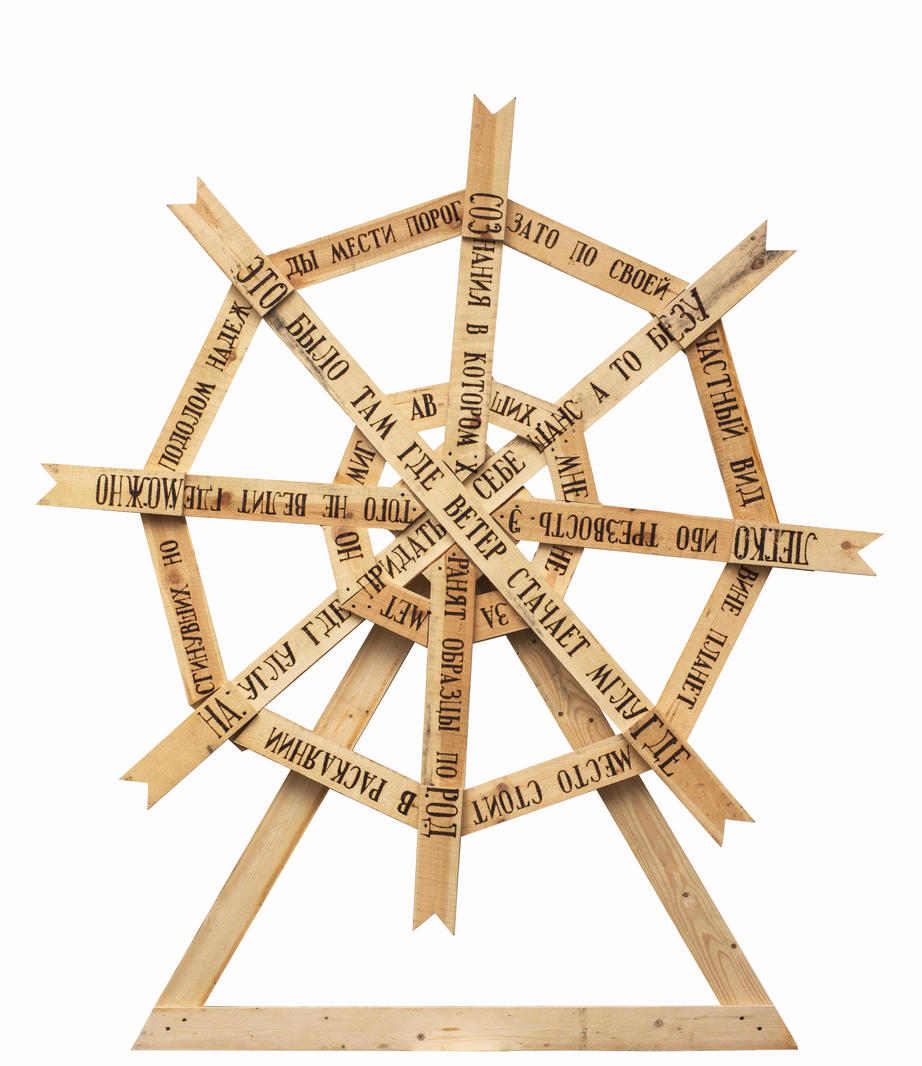 Колесо фортуны, в данном случае напоминающее каноническое колесо сансары с восемью спицами, — один из известнейших арканов Таро. Это сюжет, исследующий фортуну, удачу, как некий принцип, навык, которым можно овладеть. Когда одна сторона колеса поднимается, то другая непременно идет вниз, и лишь умудренный актор сохраняет себя в неизменной позиции над вращением. В традиционном сюжете этот персонаж обозначался сфинксом.