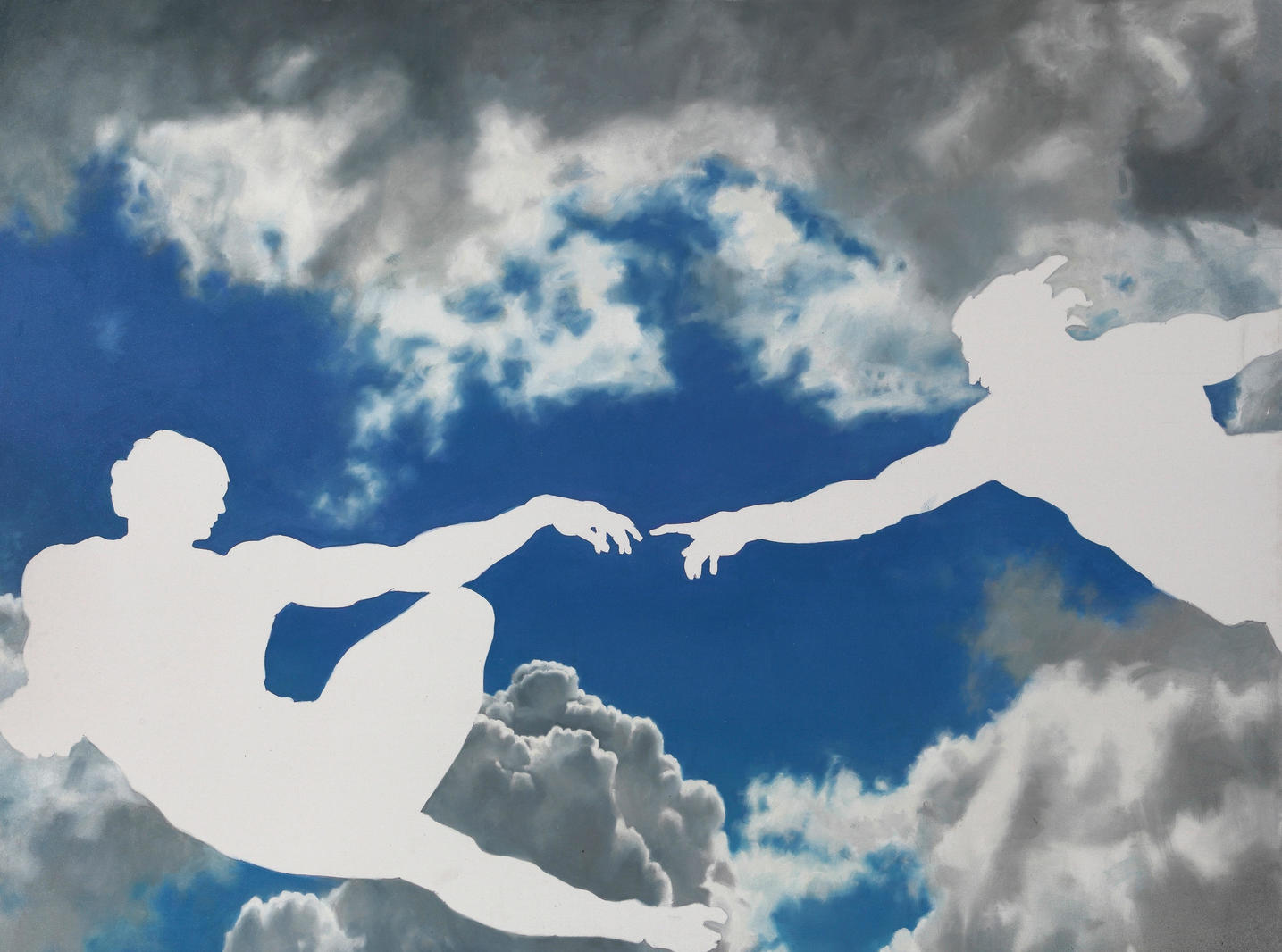 Картина «Сотворение» — это одна из трех работ, созданных к выставке под названием «Диалоги с великими», которая состоялась в Питере и в которой принимали участие 16 питерских и московских художников. Выставка проходила в знаменитых залах Союза художников Санкт-Петербурга. Как ясно из названия, в работах должны были присутствовать отсылки к шедеврам мирового искусства. Одной из главных фишек в работе было не закрасить белым главных «персонажей», а оставить нетронутым чистый белый холст, тем самым определив образы в иное смысловое и метафизическое пространство.